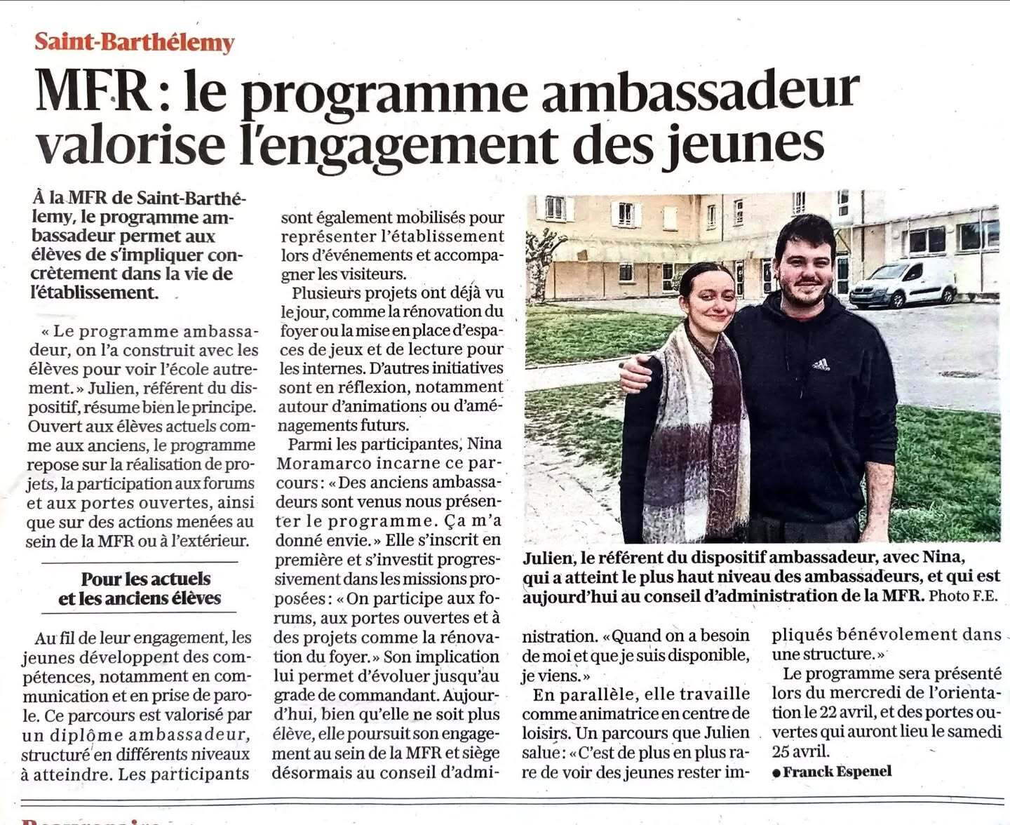 Au sein de la MFR de Saint-Barthélemy, les élèves occupent une place centrale dans la promotion de leur établissement. Convaincue que les jeunes sont les mieux placés pour parler de leur parcours, l’équipe pédagogique a développé un programme dédié pour les accompagner dans ce rôle d’ambassadeur.